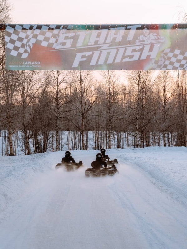Prepare for an adrenaline-fueled adventure amidst Lapland’s pristine beauty! Just a short 5-minute drive from Rovaniemi City Center, our private 500-550m ice karting track sits along a picturesque riverbank. Surrounded by the enchanting Lapland landscape, you’ll find yourself on high-speed straights and challenging corners, perfect for thrilling drifts. Suitable for the entire family, this experience combines the exhilaration of ice karting with the untouched nature of Lapland’s natural winter wonderland. At Access Lapland, safety is our utmost priority. Our team of professional guides is not only passionate about delivering exciting adventures but also dedicated to ensuring your safety throughout your Arctic Ice Karting experience. With their extensive knowledge of the terrain and unwavering commitment to safety protocols, you can trust that you’re in good hands. So, as you race across the ice, you can fully immerse yourself in the exhilaration, knowing that our guides are there to provide a secure and enjoyable journey, creating peace of mind for you and your fellow adventurers.